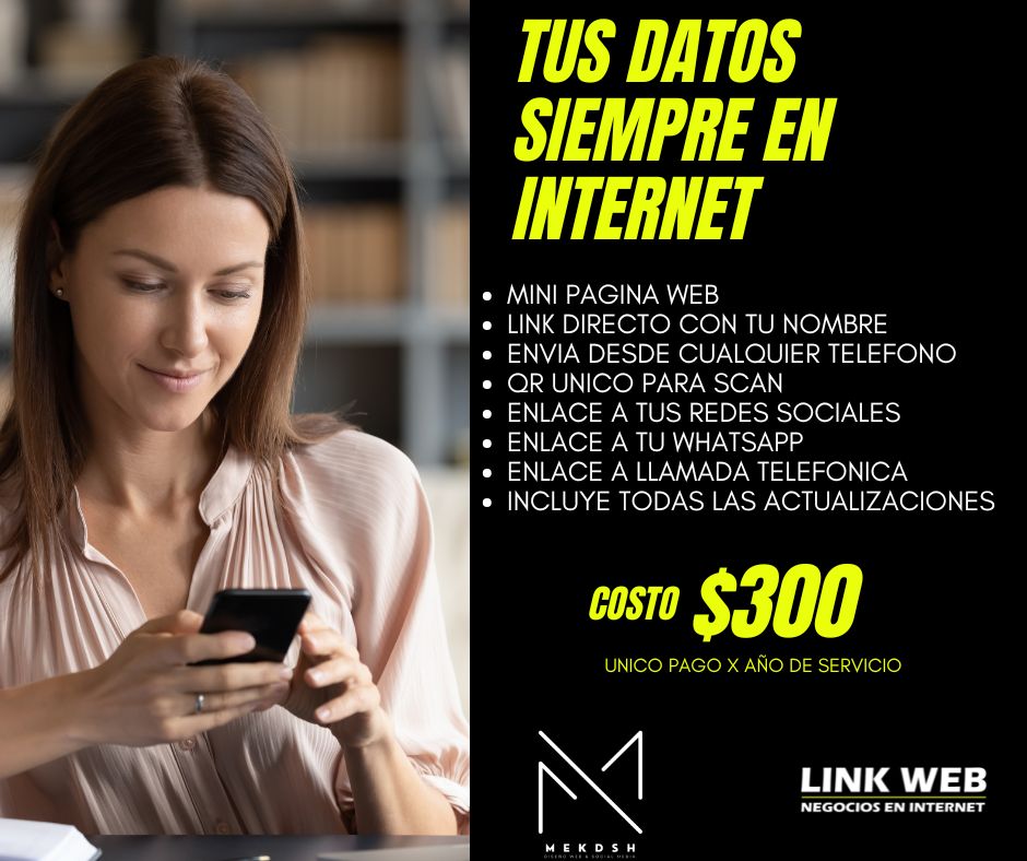 La forma más rapida de poder darle a tus clientes tu contacto, colocar tu menú y poder hacer contacto hacia whats app o cualquier red social.